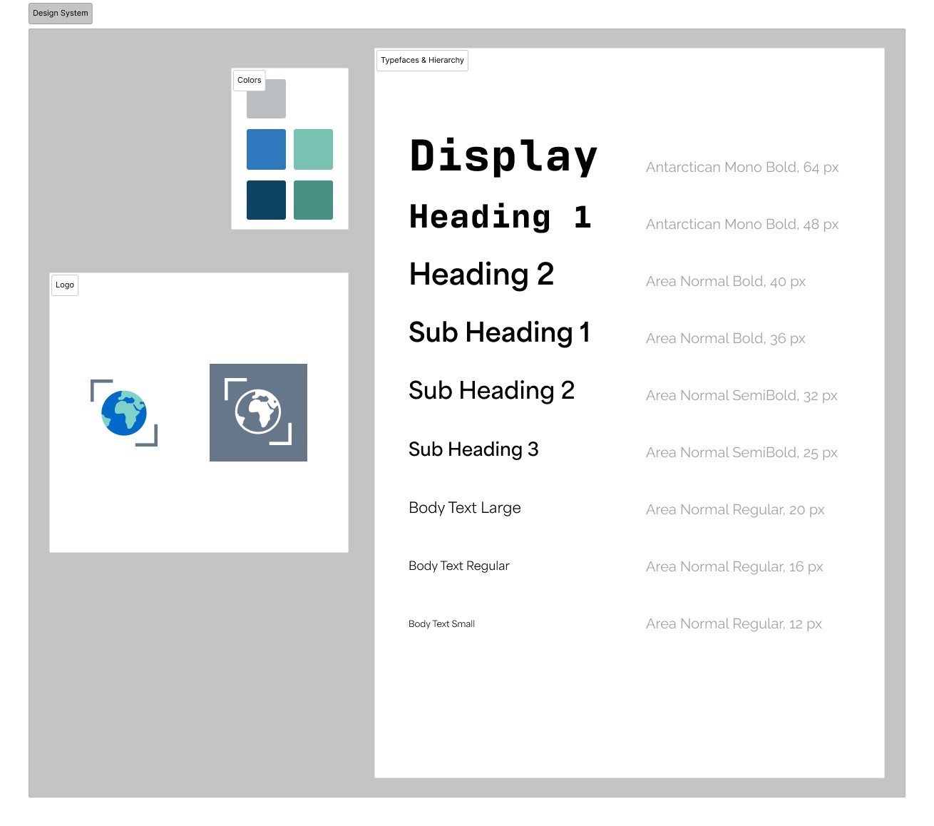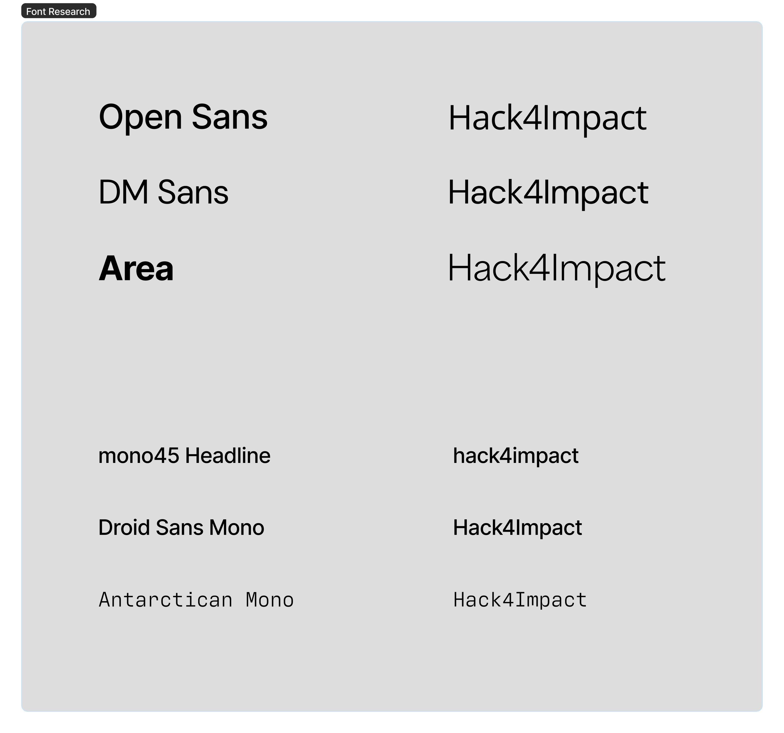 Our team started with researching and listing numerous types of Adobe fonts and filtered them down by considering carefully their tone, x-height, and width to create a unified design. Our vision was a friendly and approachable appearance and a typeface that was a sans-serif, but included a contrasting decorative font. To start with, we were drawn by the Antarctican Mono that has a nuanced code like design, but modified it according to the feedback provided by the client to prevent too technical of a feeling. Finally, we chose the Antarctican Mono as our primary headings font and Area as our body text.