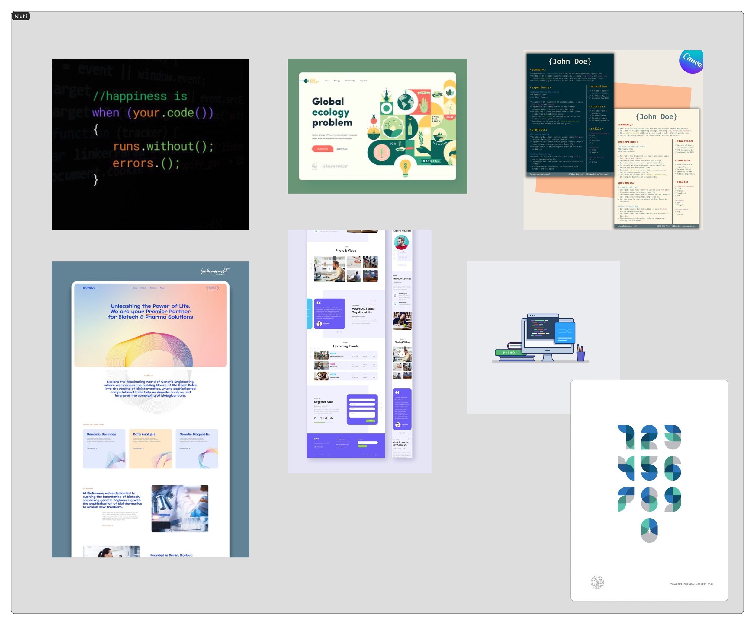 In the bottom right box, we created a master mood board where we combined all the ideas that we liked as a group and wanted to apply to our redesign. Overall, we had a vision for our key colors to include blue, green, and neutral colors to balance them.