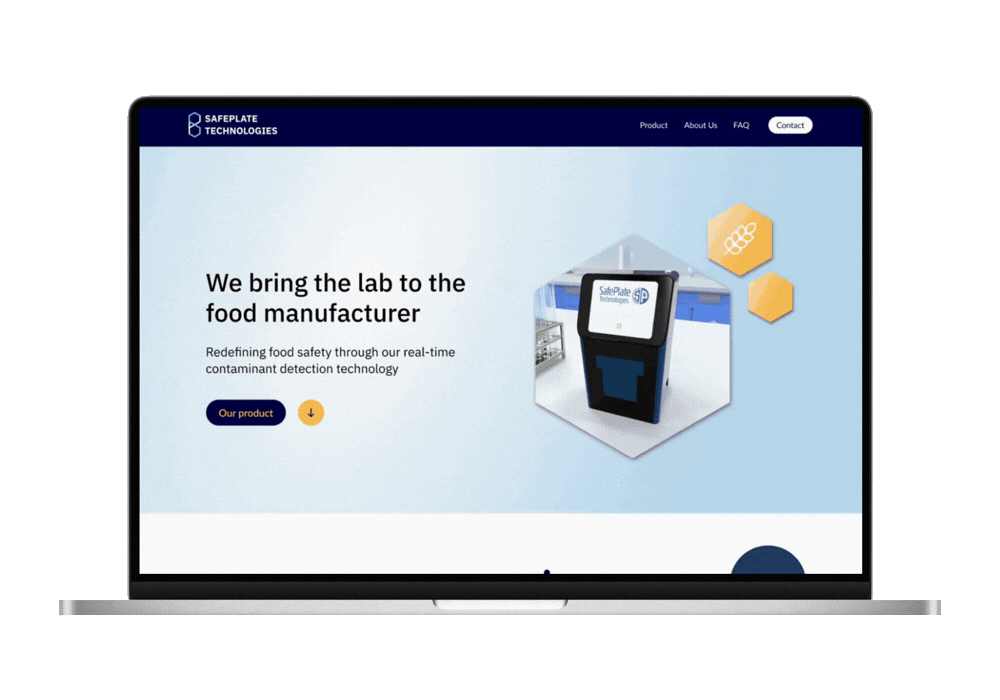 Website redesign highlighting real-time allergen detection and enhancing investor engagement.